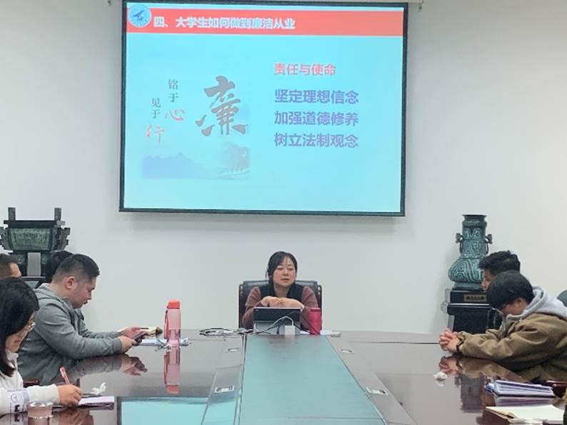 最后,彭书记强调廉洁教育是以社会主义核心价值观为引领和主导,当代大学生在校期间应逐步形成积极健康的道德情感和正确向上的价值取向,懂得清清白白做事、堂堂正正做人的道理,强化自我约束、树立法制观念,为成为社会主义事业合格的建设者和可靠的接班人打下良好的基础。