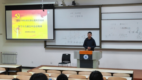 2020年11月4日,太阳成集团tyc122ccvip本科生一支部和本科生二支部联合举办主题党日活动,学习贯彻党的十九届五中全会精神。本次活动由本科生二支部党支部书记、学生辅导员黄佛保老师主持,学院全体本科生党员参加了此次主题党日活动。