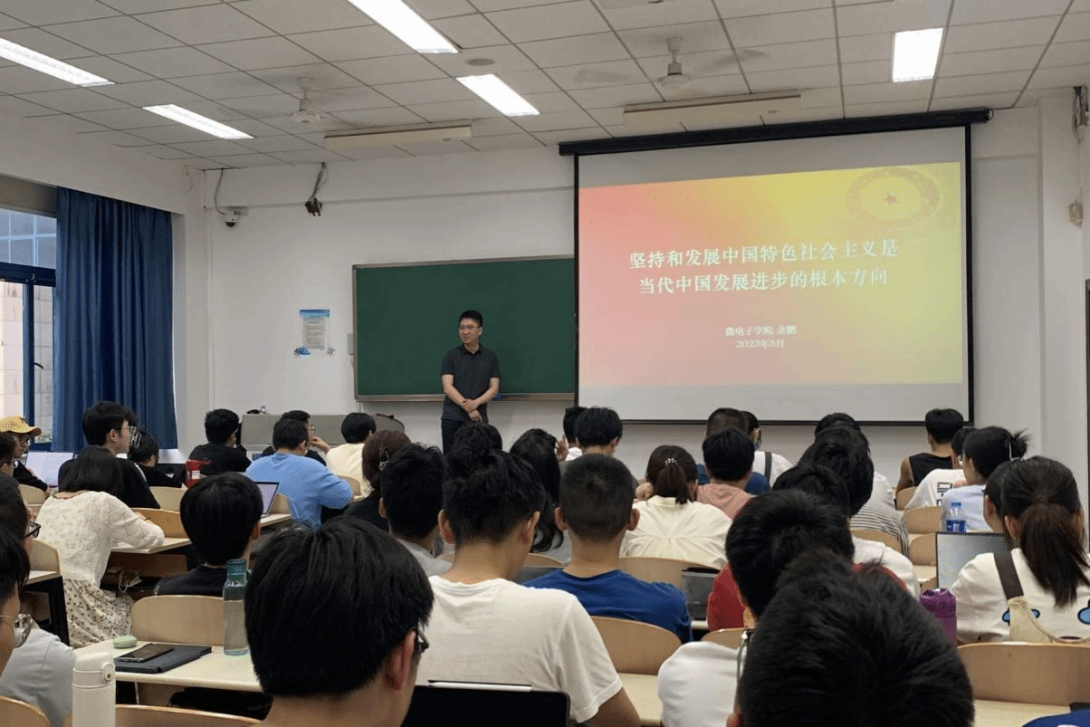 课程开始,余鹏带领大家学习二十大报告,结合自身学习经历和工作经历讲解对党和人民事业具有重大现实意义和深远历史意义的三件大事,通过回顾学校和学院近年发展成就,加深了同学们对新时代伟大成就的认识和理解。