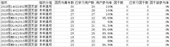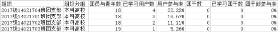 与此同时,部分团支部学习覆盖率比较低,2017级的1、2、3、4班学习率均低于30%,在此对以上团支部提出批评,并要求团支书进行学习整改,希望这些团支部在之后的学习中能够提高学习积极性,按时完成学习任务。