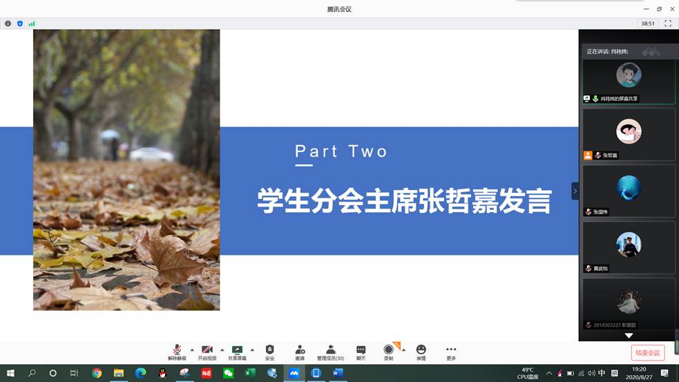 转眼间2020年已过去大半,国内疫情趋于稳定,万象复苏,生机盎然,各行各业的人们都已基本完成复工复产,我们的大学生活也即将回归正轨。8月27日晚七点,在新学期开学之际,年轻的太阳成集团tyc122ccvip学生会通过网络召开了第二届换届选举大会。