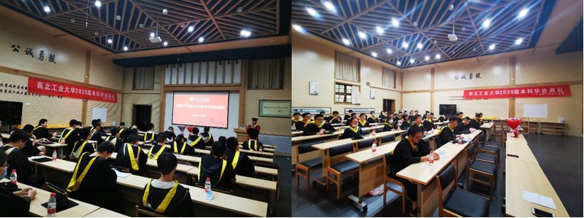 中国科学院院士、常务副校长黄维宣读了《关于表彰2020届本科优秀毕业生的决定》,授予了康在飞等228名同学“西北工业大学2020届本科优秀毕业生”荣誉称号。留学生代表Safonova Nadezda(晨曦),学院优秀毕业生代表周翔等的发言道出了全体毕业生对母校的感恩之情。教师代表齐乐华教授深情寄语,希望同学们不忘初心,做有理想的青年。毕业生代表为教师代表、辅导员代表、班主任代表、保卫处代表、校医院代表、餐厅代表、学生公寓管理员代表、校车驾驶员代表等献上鲜花。家长代表丁雪丽女士是陕西省重点收治新冠肺炎病例医院的护士长,全场以最热烈的掌声表达了对所有抗击一线的英雄们的致敬。校友代表李鹏的致辞亲切质朴,满怀学长的殷勤之情。校长汪劲松以《理想客观认识世界》为题,表示了对全体毕业生的殷切期望,并宣布授予学位。最后在西北工业大学校歌中,主会场毕业典礼落下帷幕。