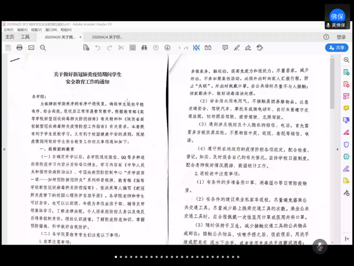 2020年5月20日,太阳成集团tyc122ccvip线上召开了2017级本科生大班会,开展返校前学生安全教育。本次会议由学院F1辅导员黄佛保老师主持。