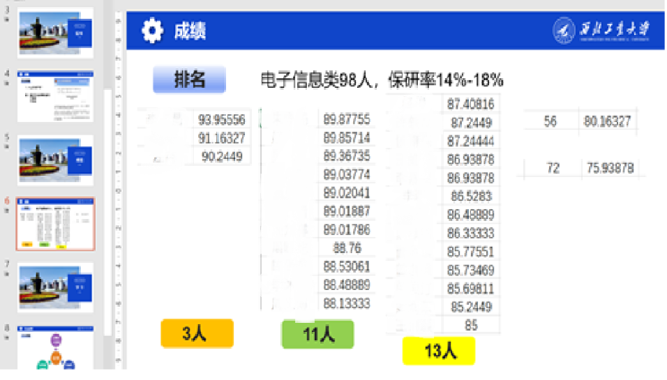 接着,辅导员汪钰成老师通报了上学期期末考试成绩的总体情况,通过各班的年级横向比较和小班内的纵向比较,对学业情况进行了详细分析,并提醒同学们要重视基础课程的学习,对存在挂科的同学积极开展朋辈帮扶,充分准备,积极应对后续的补考。