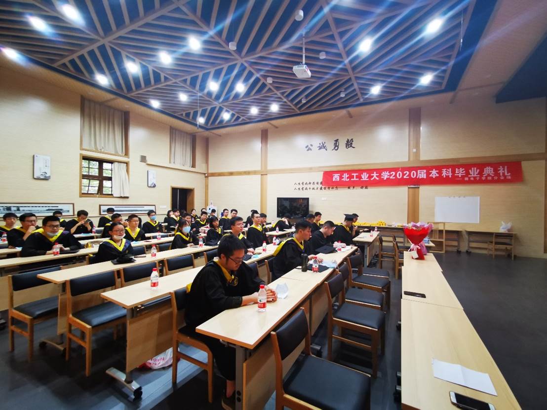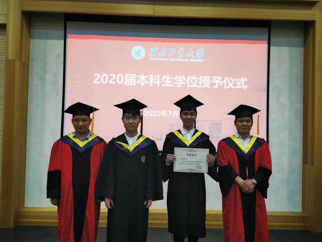 留学生代表Safonova Nadezda(晨曦),学院优秀毕业生代表周翔等的发言道出了全体毕业生对母校的感恩之情。教师代表齐乐华教授深情寄语,希望同学们不忘初心,做有理想的青年。毕业生代表为教师代表、辅导员代表、班主任代表、保卫处代表、校医院代表、餐厅代表、学生公寓管理员代表、校车驾驶员代表等献上鲜花。家长代表丁雪丽女士是陕西省重点收治新冠肺炎病例医院的护士长,全场以最热烈的掌声表达了对所有抗击一线的英雄们的致敬。校友代表李鹏的致辞亲切质朴,满怀学长的殷勤之情。校长汪劲松以《理想客观认识世界》为题,表示了对全体毕业生的殷切期望,并宣布授予学位。最后在西北工业大学校歌中,主会场毕业典礼落下帷幕。
