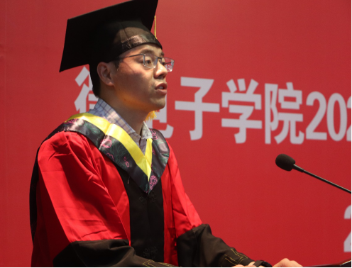 典礼第四阶段,党委副书记(主持工作)寄语:甘雪涛代表学院党委向同学们表示衷心的祝福和感谢。希望同学们铭记“公诚勇毅”的校训,将个人理想抱负与党和国家的发展相结合,时刻心系祖国,心系党,作为微电子科学与工程专业学生,要牢记使命,为我国集成电路领域发展做出自己的贡献。