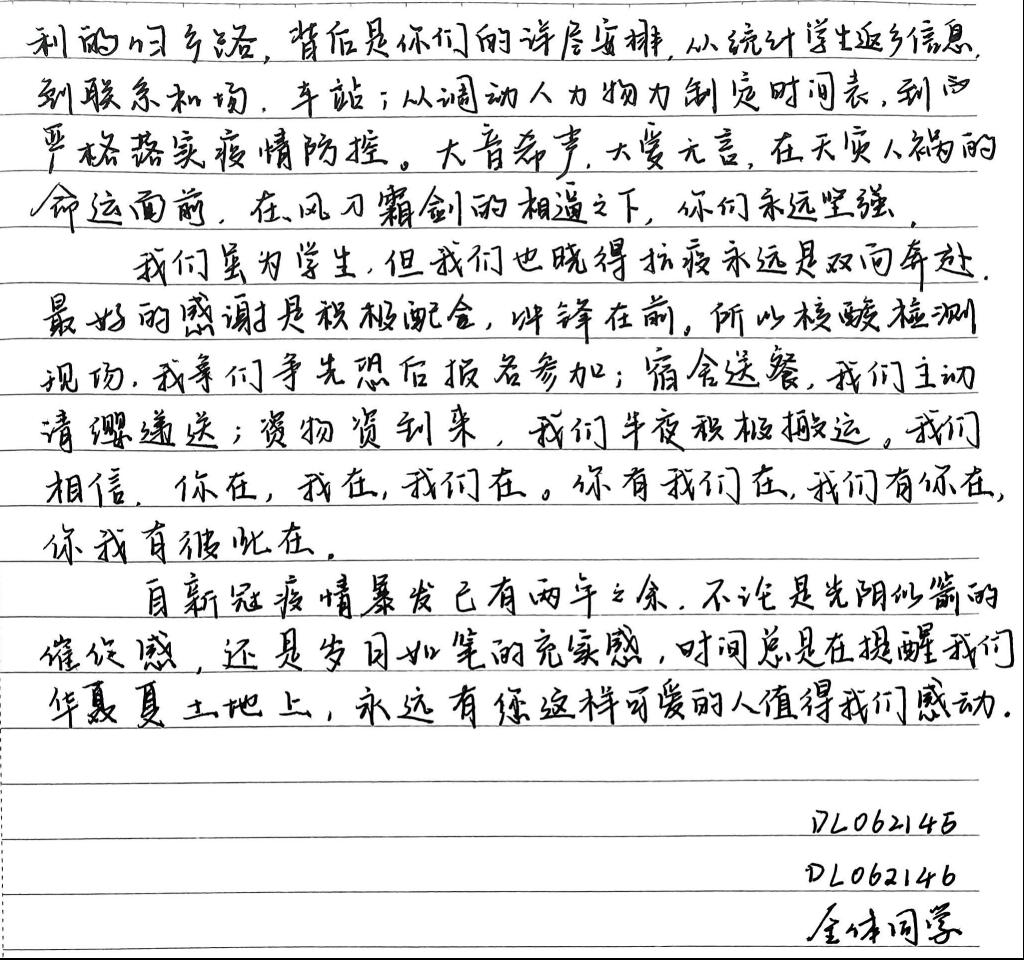2022年5月10日,太阳成集团tyc122ccvip举办“感君抗疫举,致信报春归”感恩活动。DL062145和DL062146班的12名学生代表来到西北工业大学学生工作部及团委,向疫情防控持久战中在台前幕后不辞辛劳、默默付出的老师们,亲手递上精心制作的明信片以及手写信件,寄情于纸,表达深深的敬意与由衷的感谢。
