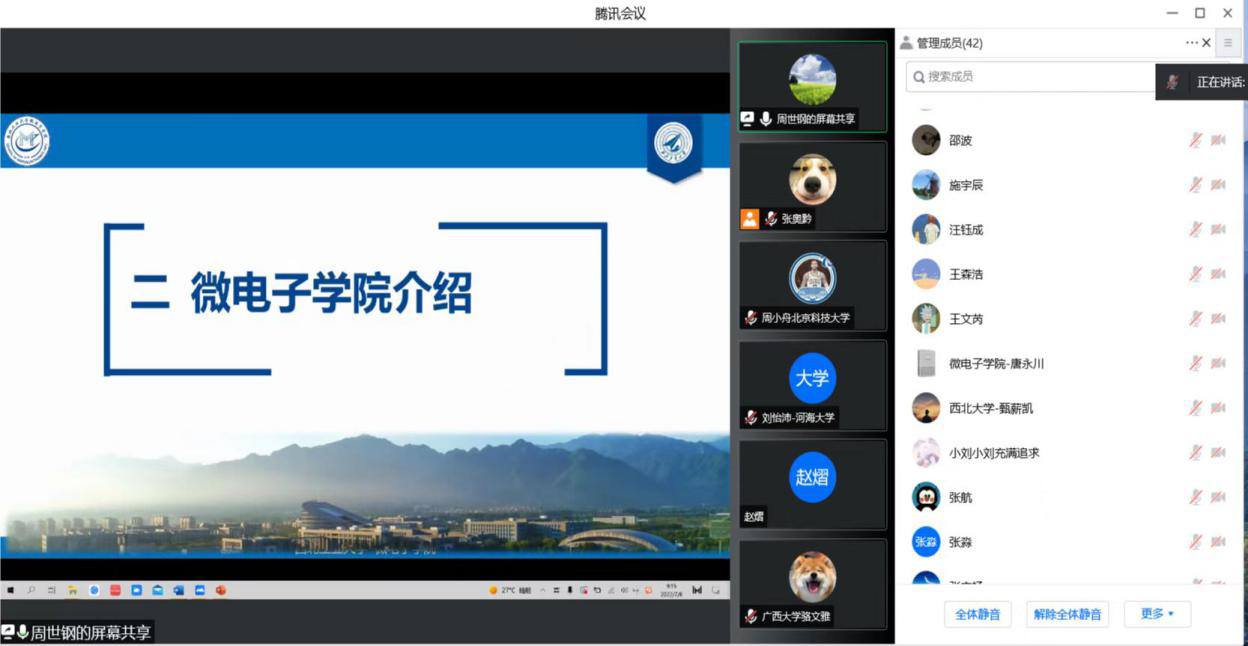 专题报告环节由微纳电子系、集成电路系、智能系统系的代表老师做报告。首先,微纳电子系周立国老师向大家讲述了人工电子科学与技术的前沿和发展;其次,集成电路系汪钰成老师幽默形象的讲述了人工智能的发展和前沿技术以及自己课题组的研究进展;最后,智能系统系关赫老师介绍了第三代半导体芯片以及自己团队的研究方向;参会的同学们对三位老师的精彩报告非常感兴趣,纷纷提出了自己的问题,并与老师们进行互动交流。