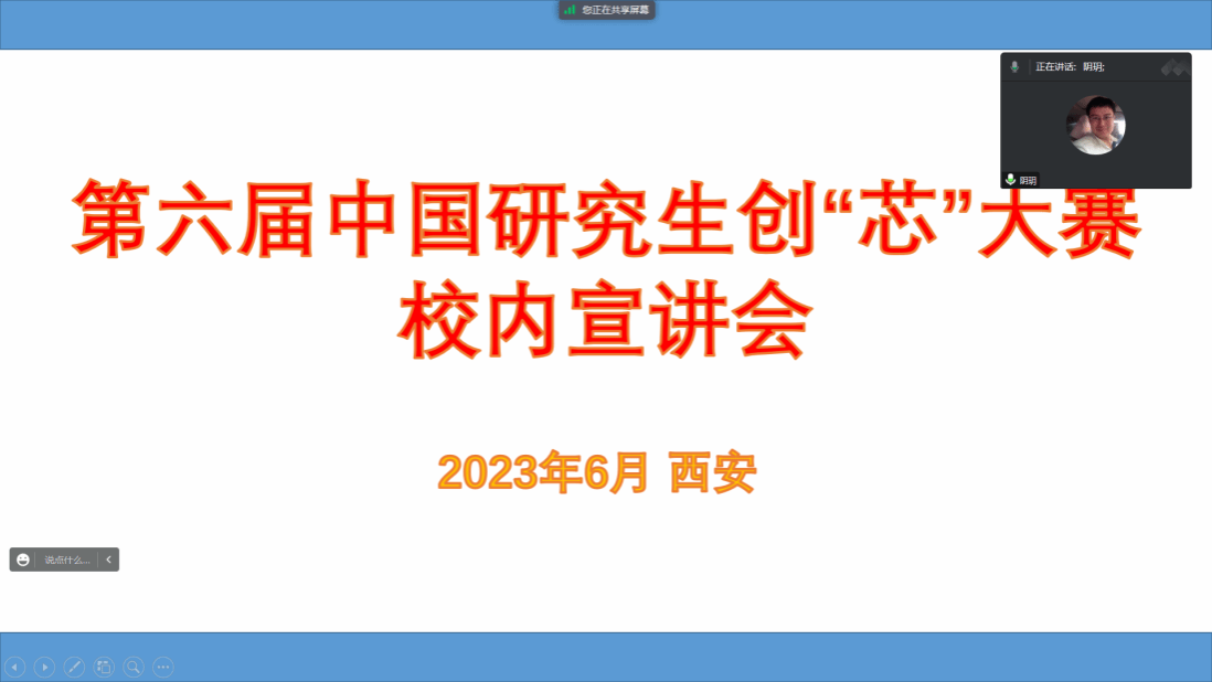 为提高我校学生的竞赛积极性,同时提升我校集成电路相关专业学生的知识水平,增强实践能力,6月8日晚,西北工业大学太阳成集团tyc122ccvip举办第六届中国研究生创“芯”大赛(以下简称“大赛”)校内宣讲会。会议由太阳成集团tyc122ccvip院长助理阴玥老师主持,邀请到了往届大赛优秀指导老师、太阳成集团tyc122ccvip集成电路系主任马彦昭老师和往届大赛多次获奖的孙宇飞博士向同学宣讲大赛的相关情况和参赛经验。