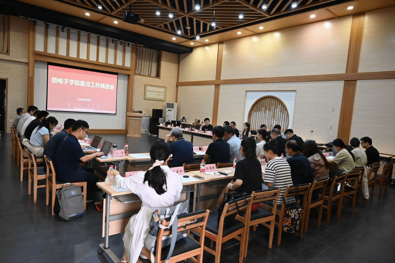 首先,马炳和从学院目标定位、微电子“总师型”人才培养体系、科研方向布局、重点工作推进和目标责任制落实情况等方面,对学院工作进行了总结,对深入推进“总师型”人才培养、加强高水平师资队伍建设、推动科学研究高质量发展提出了要求。