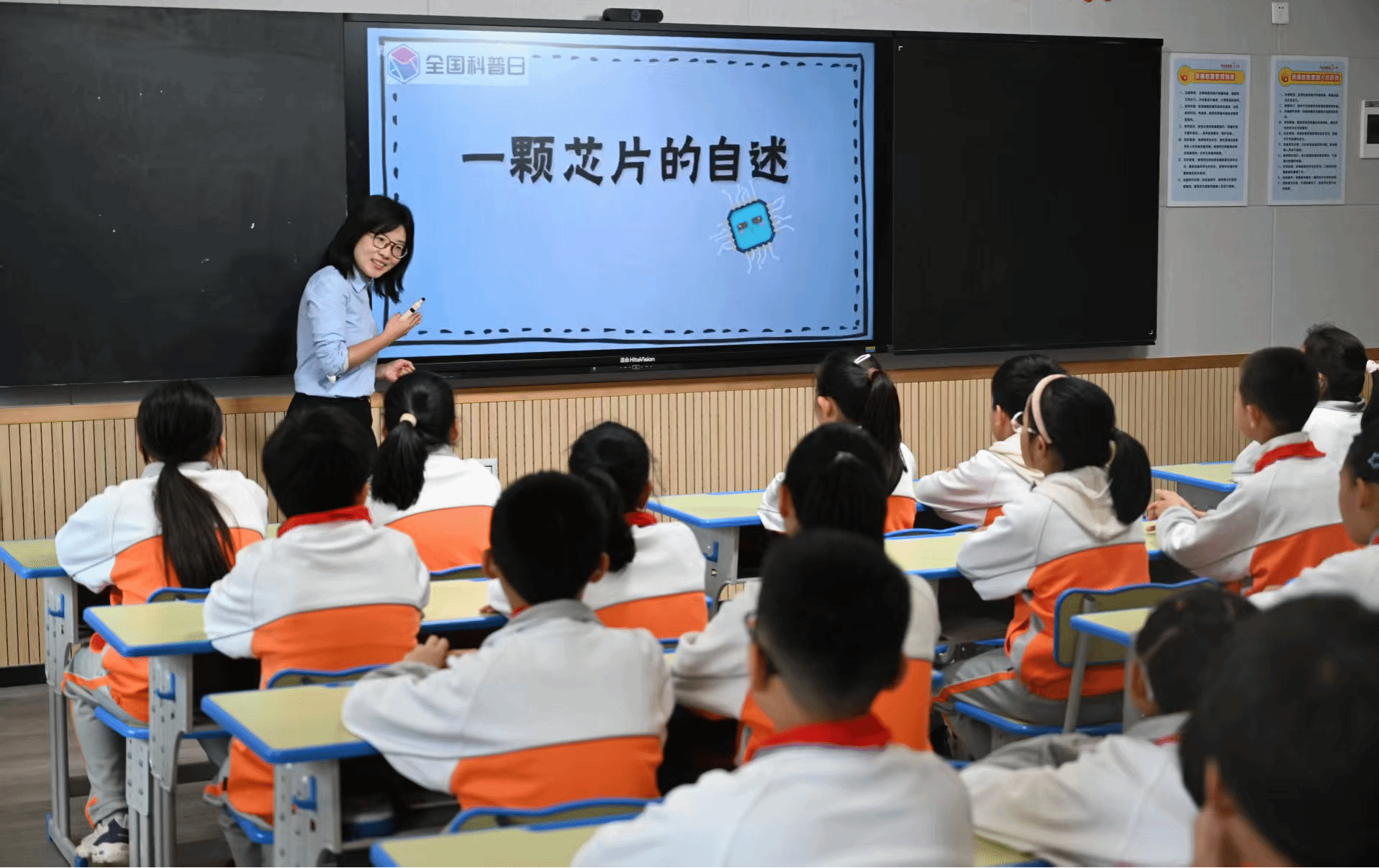 讲座共分为科普宣讲和实践操作两个阶段。首先,汪瑛老师从汽车、电脑等终端为切入口,形象具体地讲述了芯片在现实生活中的广泛应用和重要地位;接着,她通过展示晶圆和超净间服装,通俗易懂地介绍了芯片的制作过程。讲座过程中,充满好奇的同学们与老师积极互动,并对芯片的高精尖特征发出阵阵惊叹。