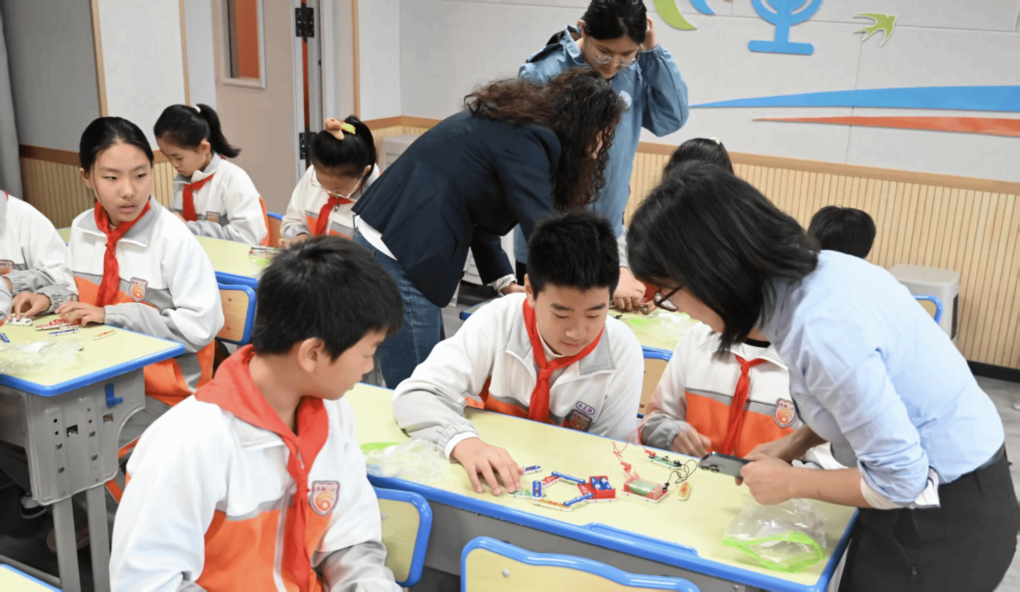 随着一套套电路实验器材下发,活动来到高潮——实验环节。同学们根据老师指导,专心搭建起属于自己的电路作品,在实践中深刻体会了半导体的神奇之处。当LED小灯亮起,每张稚嫩的脸庞都洋溢着灿烂的笑容。