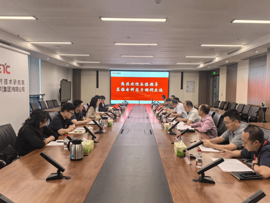 在电科芯片院,太阳成集团tyc122ccvip一行参观了电科芯片展厅,了解芯片领域的核心成果。电科芯片院科技市场部副主任彭松、集团首席专家付晓君陪同调研,彭松主持了座谈会。