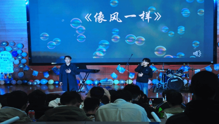 晚会前,马炳和院长通过视频送来寄语与祝福,真挚的话语深深感染了在场每一位师生。现场节目精彩纷呈,HighCold 乐队表演瞬间点燃全场热情,青春活力尽情释放。随后的歌曲演唱中,同学们用歌声串联起青春记忆,悠扬旋律沁人心脾。《咆哮》独舞展现青春张力,《青春不眠》舞蹈串烧活力四射,乐器合奏动人心弦,由辅导员王一星出演的《寻心》情景剧更是引发全场情感共鸣,成为晚会亮点。抽奖环节气氛热烈,为晚会增添难忘回忆。