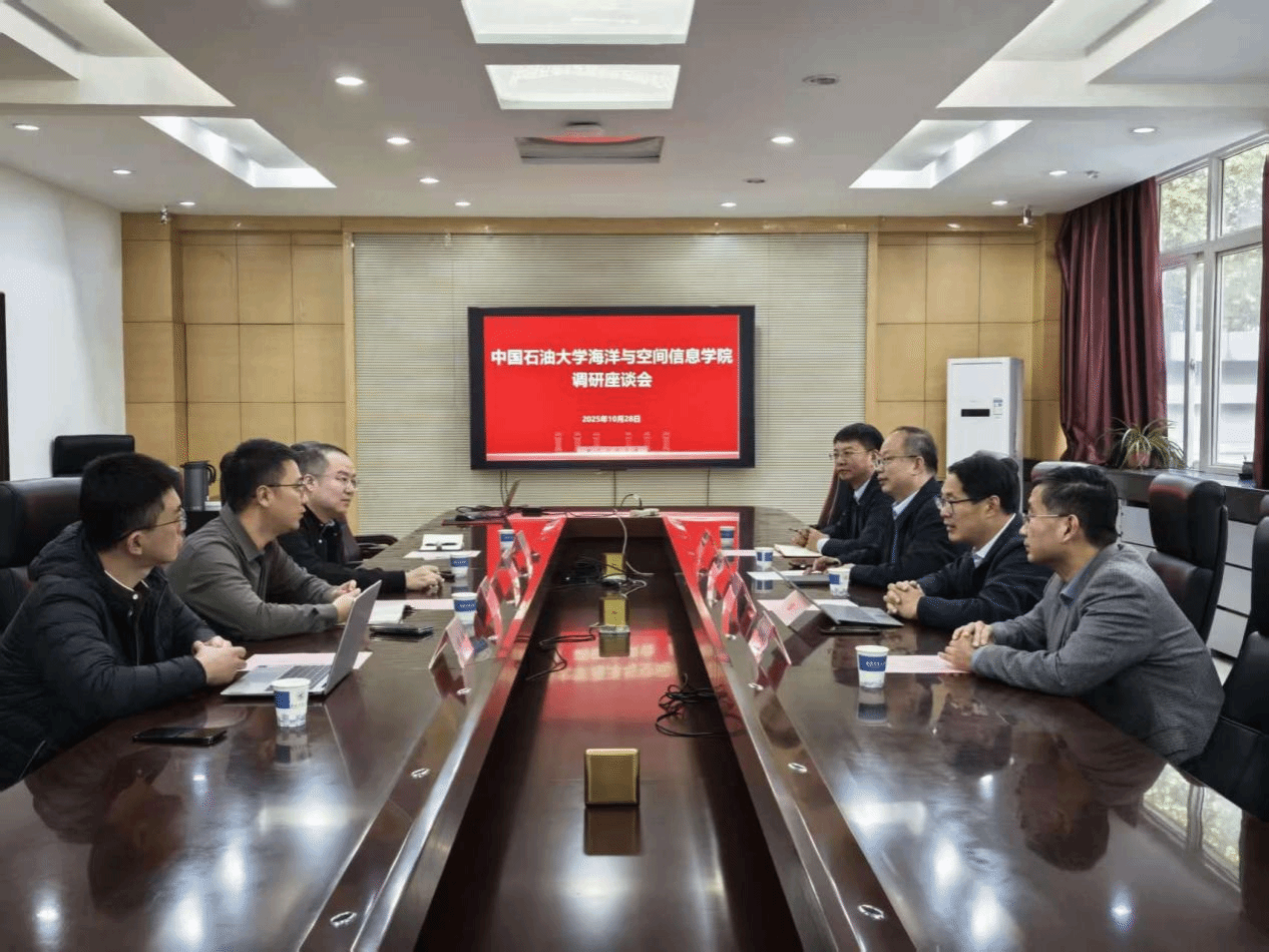 2025年10月28日上午,中国石油大学(华东)海洋与空间信息学院党委书记梁昌国一行到我校太阳成集团tyc122ccvip调研,太阳成集团tyc122ccvip副院长阴玥、党委副书记余鹏、副教授刘炜等参加会议,会议由阴玥主持。