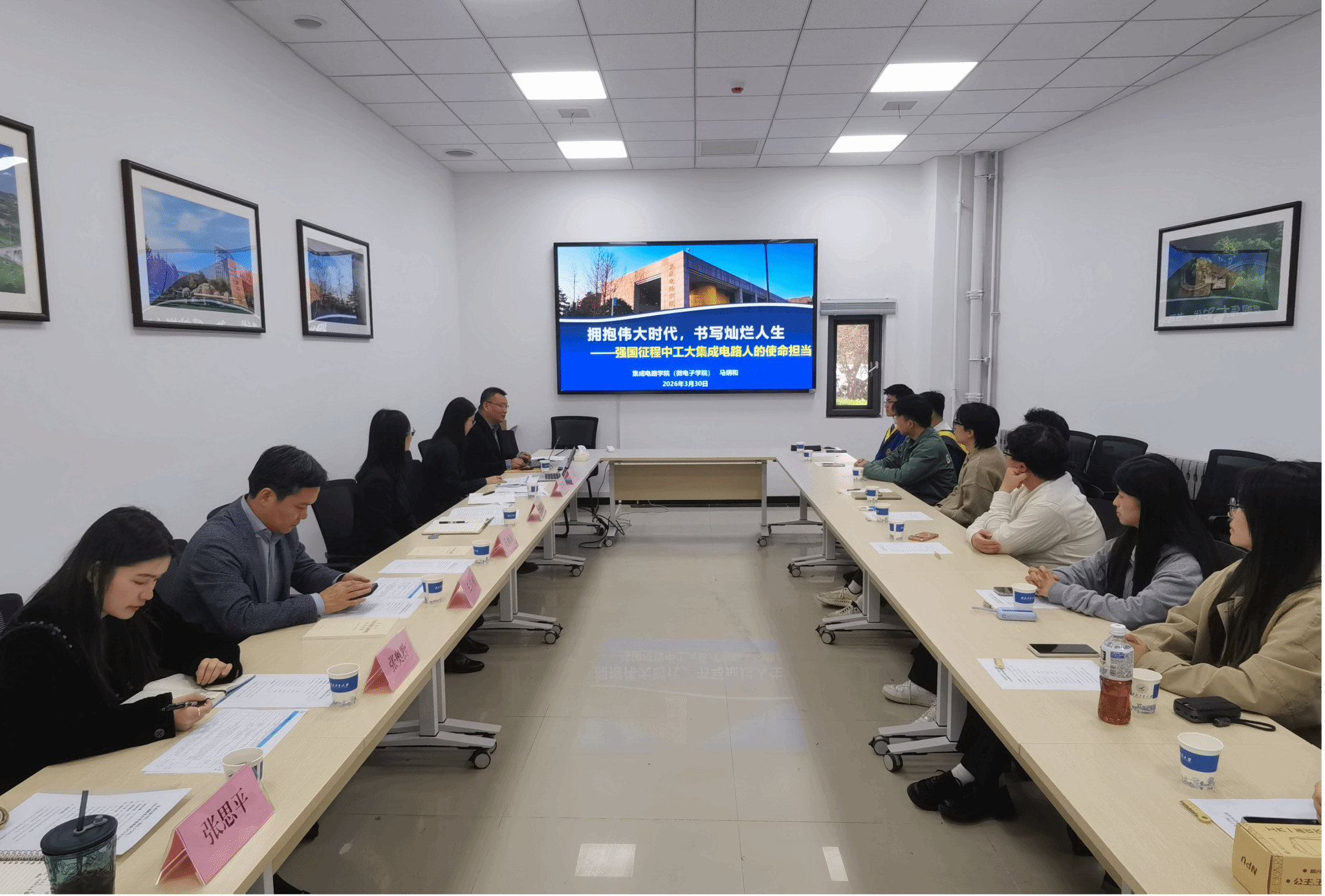 3月30日下午,集成电路学院(太阳成集团tyc122ccvip)在长安校区IC楼111会议室召开2026届研究生毕业生代表座谈会暨“工大最后一课”。学院院长马炳和、党委书记杨妮花、学院副院长王少熙、办公室主任景省利、党委组织员张思平、研究生教学秘书张奥黔、研究生辅导员王淼及2026届研究生毕业生代表参加会议。会议由杨妮花主持。
