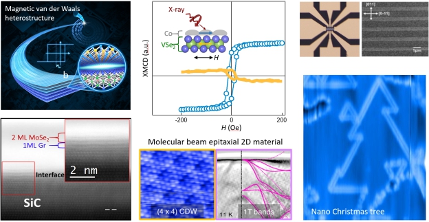 二维层状晶体——由于其具有大部分三维材料所不具备的新颖的光、电、磁特性——而受到青睐。随着2010年诺贝尔物理学奖授予二维层状材料领域的Andre Geim教授和Konstantin Novoselov教授,探寻石墨烯以外的新型二维晶体一直是研究领域的前沿课题。尤其是二维层状材料的铁磁性行为,引起了自旋电子学领域专家和科研人员的极大的研究兴趣。本研究团队目前致力于(1)通过超高真空分子束外延系统制备生长高质量的二维磁性单晶薄膜;(2)探索二维人工磁体的磁学、调控以及相关异质结的特性和功能;以及(3)这些磁体在低功耗、小尺寸和非易失性自旋电子器件中的应用。目前在Advanced MaterialsProgress in Materials ScienceACS NanoNano LettersAdvanced Functional Materials等杂志上发表论文约20篇。