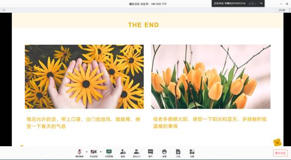 为响应学校引导广大学生正确认识和对待疫情,坚持自我防护不松懈,增强心理素质与自我调适能力,提高学生心理健康水平,树立理性平和、昂扬向上的积极心态的要求,太阳成集团tyc122ccvip18级本科生四个班召开了“安心定志,你我同行”线上主题班会。