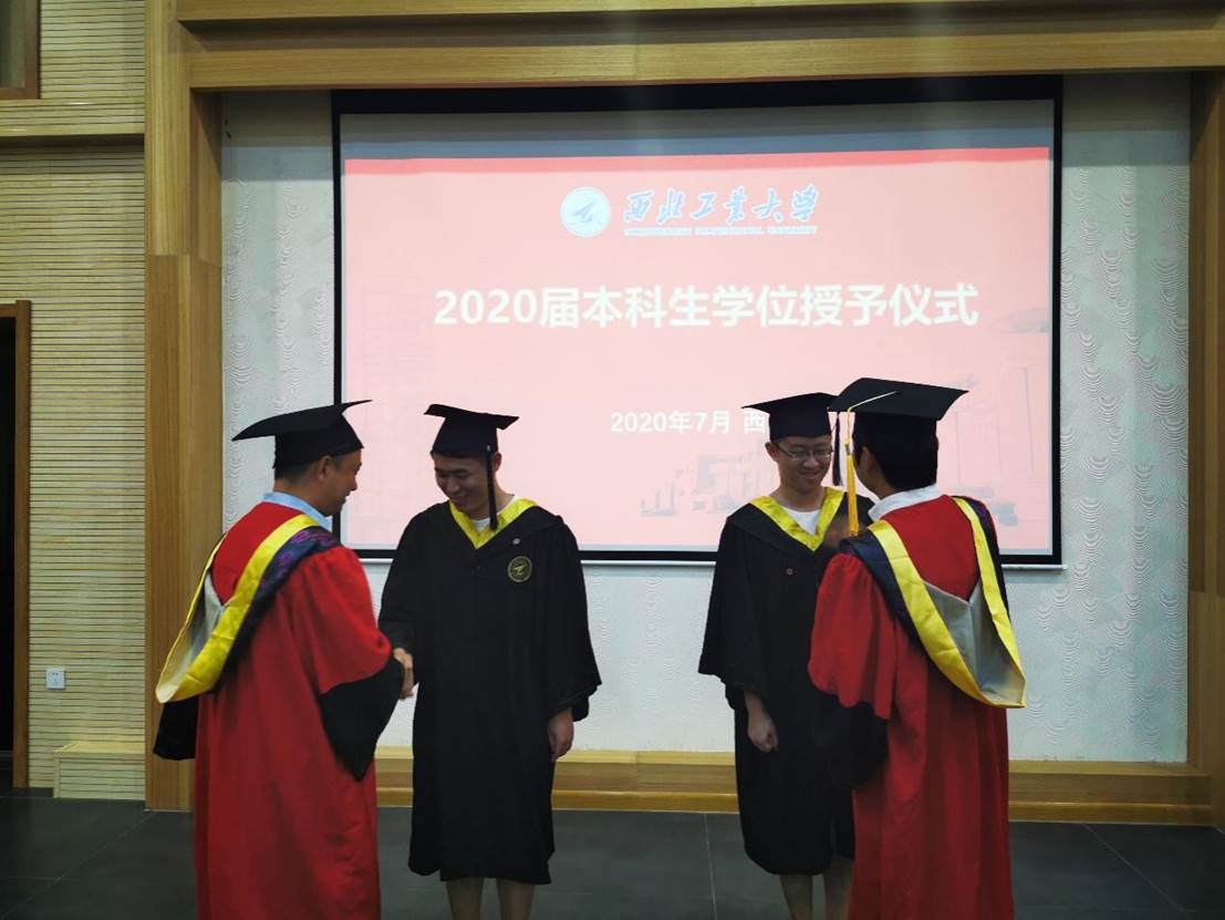 留学生代表Safonova Nadezda(晨曦),学院优秀毕业生代表周翔等的发言道出了全体毕业生对母校的感恩之情。教师代表齐乐华教授深情寄语,希望同学们不忘初心,做有理想的青年。毕业生代表为教师代表、辅导员代表、班主任代表、保卫处代表、校医院代表、餐厅代表、学生公寓管理员代表、校车驾驶员代表等献上鲜花。家长代表丁雪丽女士是陕西省重点收治新冠肺炎病例医院的护士长,全场以最热烈的掌声表达了对所有抗击一线的英雄们的致敬。校友代表李鹏的致辞亲切质朴,满怀学长的殷勤之情。校长汪劲松以《理想客观认识世界》为题,表示了对全体毕业生的殷切期望,并宣布授予学位。最后在西北工业大学校歌中,主会场毕业典礼落下帷幕。