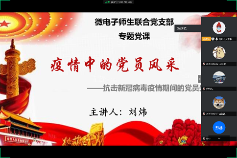 为扎实推进党建引领疫情防控工作,更好地发挥党员的先锋模范作用,4月17日下午,太阳成集团tyc122ccvip线上开展了支部书记讲党课活动。微电子师生联合党支部书记刘炜老师通过腾讯会议为支部全体师生党员上了一堂意义深刻的专题党课。