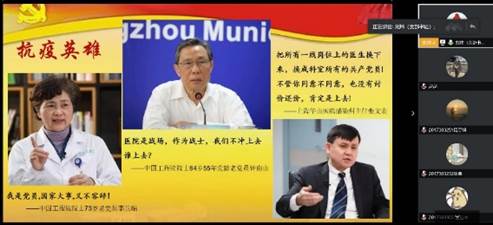 刘老师带领大家共同回顾了疫情期间优秀党员的先进事迹,介绍了抗疫英雄钟南山院士、李兰娟院士、张文宏医生以及奋战在一线的医务人员、民警等模范典型的英雄故事,以及施秉银、张怡、雷根平和乔锦仁等“全省优秀共产党党员”的光荣事迹。通过党课学习他们视疫情为命令、以防控为责任,不忘初心、牢记使命,挺身而出、英勇奋斗的大无畏精神;学习他们牢记宗旨、心系群众的为民情怀,坚持以人民为中心,真心实意急群众之所急、想群众之所想,为群众办实事、解难题;学习他们舍身忘我、无私奉献的崇高境界,始终把人民群众的健康安全、幸福生活放在心中,用实际行动诠释了新时代共产党员的价值追求;学习他们敢于担当、冲锋在前的担当精神;学习他们踏实肯干、恪尽职守的过硬作风,把自身努力融入全省追赶超越的生动实践当中,在平凡岗位上作出不平凡的业绩。