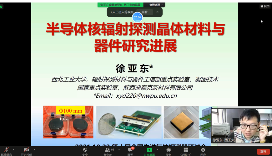 会议邀请了三位专家做特邀报告。西北工业大学徐亚东做了题为“半导体核辐射探测晶体材料与器件研究进展”的特邀报告,重点介绍了西工大在碲锌镉材料晶体、核辐射探测器研制和工程应用方面的进展。中国科学技术大学张志永代表全国先进气体探测器合作组做了“微结构气体探测器最新动态与发展前景”的特邀报告,介绍了国内外气体探测器研究关键技术进展,给出了气体探测器的应用前景。西北工业大学高武代表课题组做了题为“半导体辐射探测器前端读出电子学ASIC芯片研究进展”的特邀报告,重点介绍了国内外探测器前端读出ASIC的设计挑战、性能趋势和西工大在专用集成电路方向的研究进展。