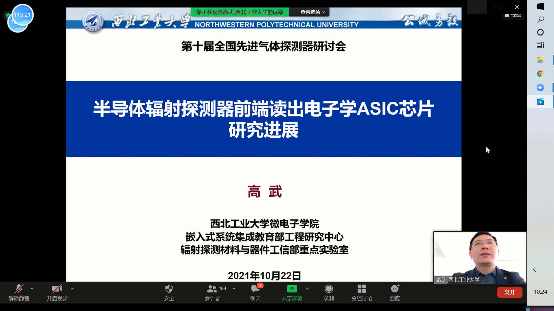 第十届全国先进气体探测器研讨会原定10月22日在西北工业大学线下召开,遵照西安市疫情防控要求,会议最终改为全部线上的形式进行,由ZOOM软件平台支持。来自国内的200多位专家、学者结合自己工作进行了广泛而深入的交流,线上会场气氛活跃,交流和思想碰撞热烈。