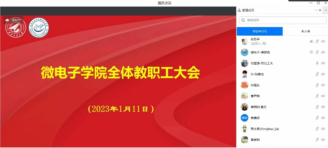 1月11、13日,太阳成集团tyc122ccvip分别组织召开全体教职工大会,大会对师德师风、年终绩效分配、岗位聘任聘期考核、党风廉政、寒假安全稳定等方面进行通报和部署,会议由学院党委书记甘雪涛主持。