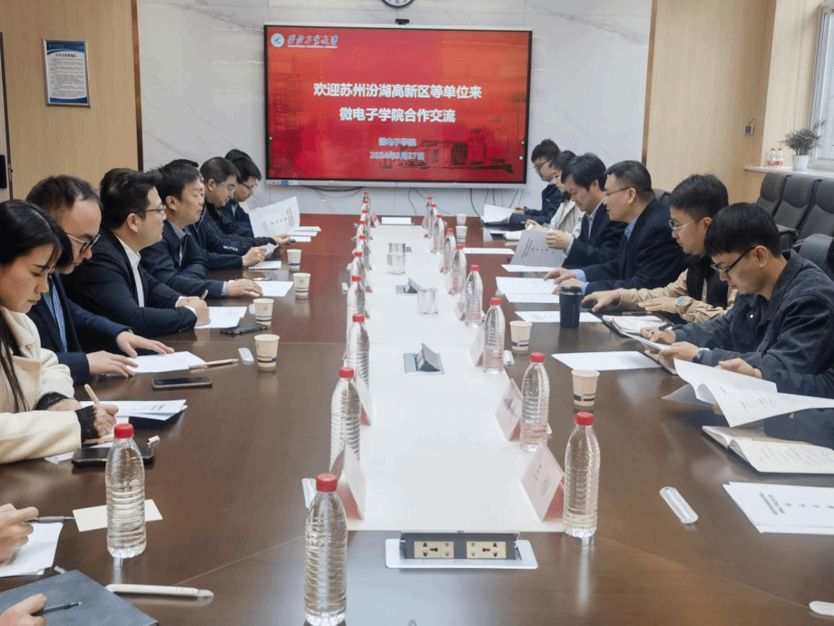 会上,马炳和对吴伟斌一行到来表示了热烈的欢迎,并紧密结合学校的三航国防特色及战略地位,深入介绍了学院在微电子、电子信息、集成电路等领域的特色。同时还结合学院在太仓地区的技术力量与地理优势,详细阐述了学院的对外合作策略及未来发展规划。双方就校企融合、科学研究、学生实习实践以及人才引进等多个方面进行了深入的探讨与交流。吴伟斌也详细介绍了苏州汾湖高新区的总体发展情况,特别是目前的发展优势及迫切需求。最后,双方的技术人员与青年教师还相互介绍了各自的研究方向及潜在的合作领域,为未来的合作奠定了坚实的基础。