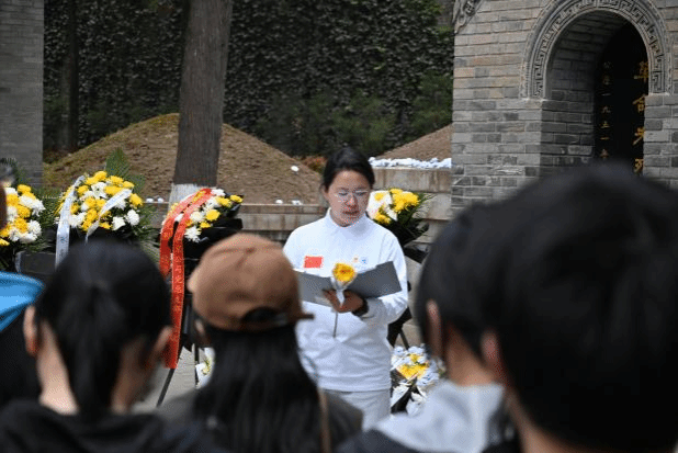 本次清明祭扫活动由24级本科生张之昭全程主持。首先,党员代表李雨彤结合西安事变重要历史背景,深情讲述杨虎城将军的革命事迹,带领大家重温这位爱国将领为民族独立、抗日救亡作出的卓越贡献。